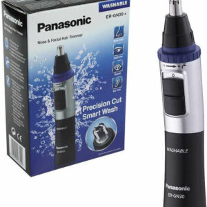 Επαναφορτιζόμενη Ανδρική Κουρευτική Μηχανή Panasonic ER-GN30-K Ασημί – Μαύρη για μύτη και πρόσωπο Πλενόμενη κουρευτική μηχανή με αποσπώμενη κεφαλή. Λειτουργεί