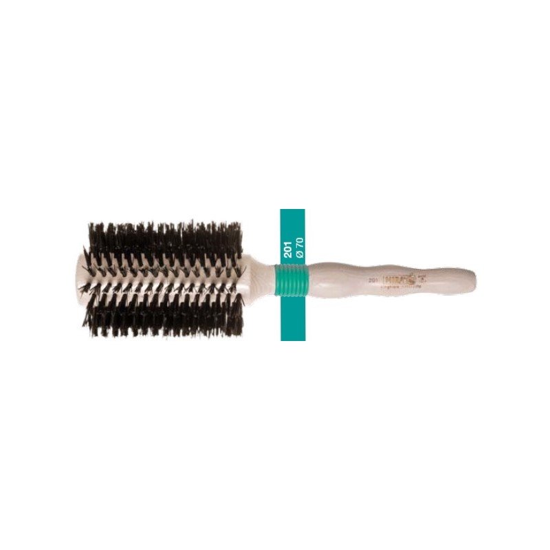 Βούρτσα μαλλιών Mira ενισχυμένη με φυσική τρίχα αγριόχοιρου. Ο σκελετός της είναι από 100% φυσικό ξύλο αντοχής. Η εργονομική της λαβή διαθέτει λαστιχένιο κρίκο που προσφέρει απόλυτο έλεγχο κατά την χρήση. Κατάλληλη για επαγγελματίες.