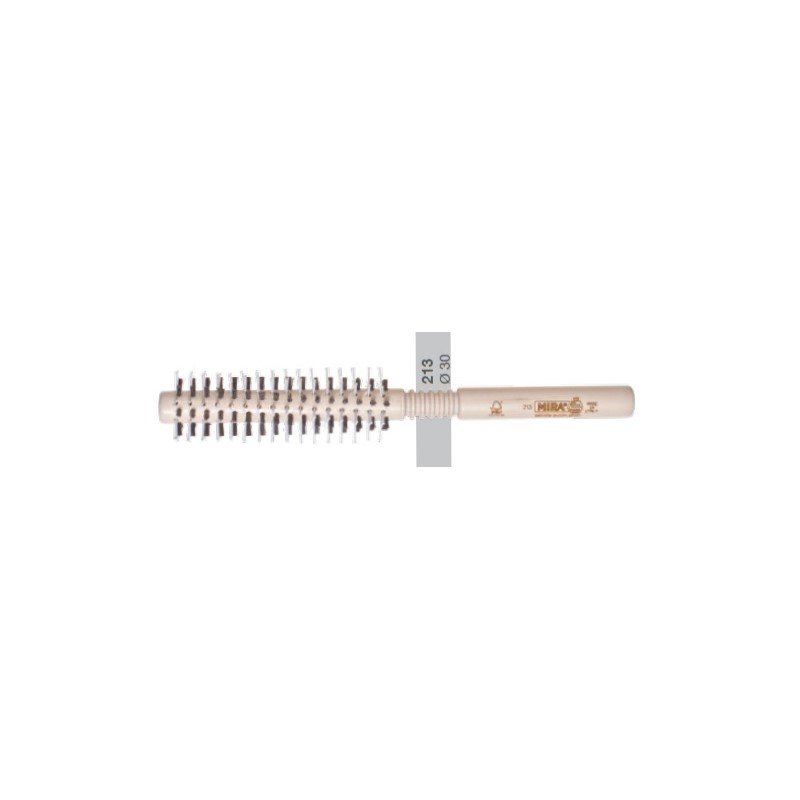 Βούρτσα μαλλιών Mira με φυσική τρίχα αγριόχοιρου ενισχυμένη με πλαστικές ακίδες υψηλής αντοχής. Ο σκελετός είναι κατασκευασμένος από 100% φυσικό ξύλο οξιάς. Η λαβή της διαθέτει χάραξη για έλεγχο κατά την χρήση.