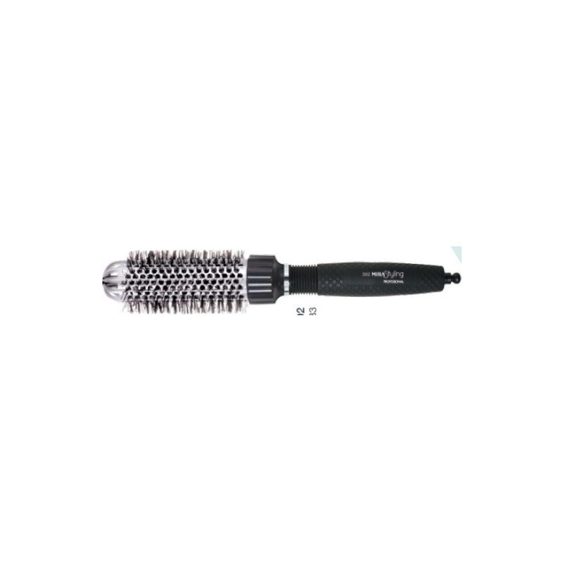 Θερμική βούρτσα μαλλιών Mira. Διαθέτει αντιολισθητική λαβή από καουτσούκ σχεδιασμένη για να προσφέρει έλεγχο και άνεση. Ανθεκτική στις υψηλές θερμοκρασίες. Κατάλληλη για επαγγελματίες.