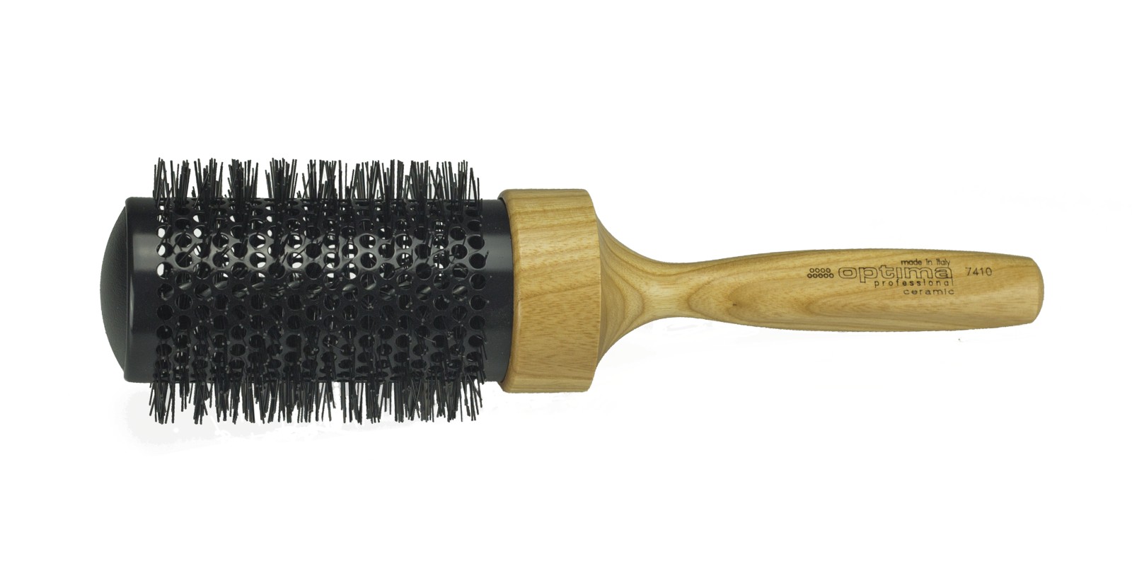 Επαγγελματική θερμική βούρτσα μαλλιών ανθεκτική στις υψηλές θερμοκρασίες. Λαβή από 100% φυσικό ξύλο. Κατάλληλη για ίσιωμα και μπούκλες. Κατασκευασμένη στην Ιταλία.