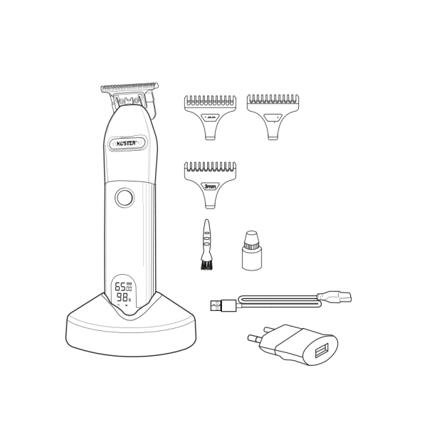Επαγγελματικό barber trimmer από την Kuster κατάλληλο για έντονη καθημερινή χρήση. Έχει χρόνο φόρτισης 2 ωρών και αυτονομία 3 ωρών καθιστώντας το ιδανικό για πολύωρη χρήση. Η λεπίδα του Titanium Zero επιτρέπει ακριβή κοπή, ακόμη και σε παχιά γένια και μουστάκι.