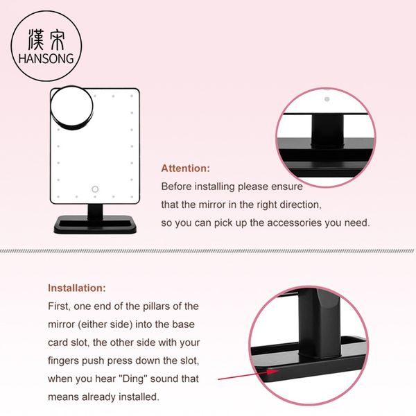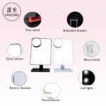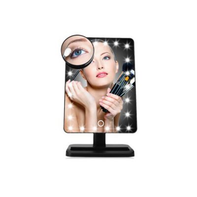 Καθρέπτης μακιγιάζ με 2 Led για φωτισμό. Μέγεθος (κλειστό):30.5*20*11.7cm Μέγεθος (ανοιχτό): 38cm*25.5cm Λειτουργία: 2*Μπαταρίες ΑΑ Διατίθεται σε μαύρο χρώμα.