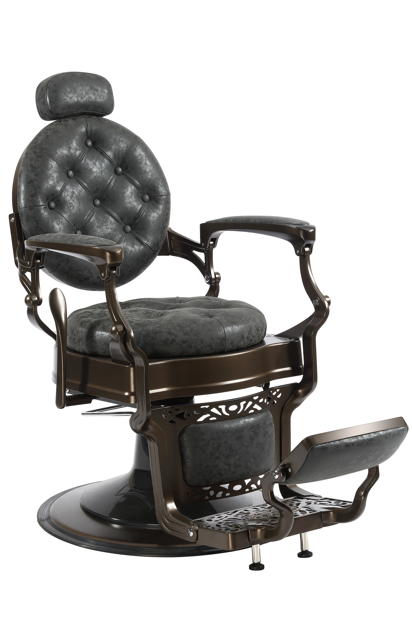 Καρέκλα Barber με υδραυλική αντλία, ρυθμιζόμενο ύψος καθίσματος, πλάτη και προσκέφαλο. Συγχρονισμένη ρύθμιση υποπόδιου και πλάτης.