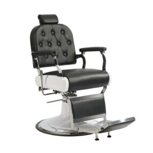 Καρέκλα Barber με υδραυλική αντλία, ρυθμιζόμενο ύψος καθίσματος, πλάτη και προσκέφαλο. Συγχρονισμένη ρύθμιση υποπόδιου και πλάτης. Χρώμα: Μαύρο Διαστάσεις: 120*113*73