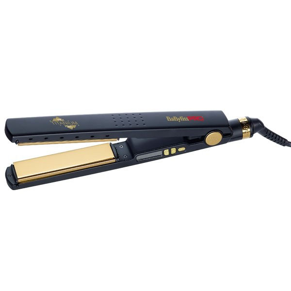 Επαγγελματική πρέσα μαλλιών Babyliss Pro BAB3091BKTE, σε μαύρο χρώμα, με πλάκες τιτανίου σε χρυσό χρώμα και ιονική τεχνολογία.