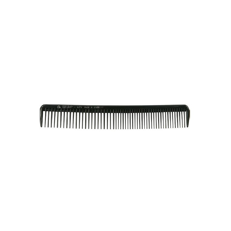 Επαγγελματική χτένα κουρέματος μαλλιών Eurostil Νούμερο 424. Διαθέτει στενά και αραιά δόντια, ιδανική για χτένισμα μαλλιών και κούρεμα. Κατασκευασμένη από πλαστικό υψηλής αντοχής. Είναι άκαμπτη και δεν παράγει στατικό ηλεκτρισμό. Δεν επηρεάζεται από χημικά και βαφές και έχει αντοχή στις υψηλές θερμοκρασίες καθιστώντας την ιδανική για χρήση με σεσουάρ.