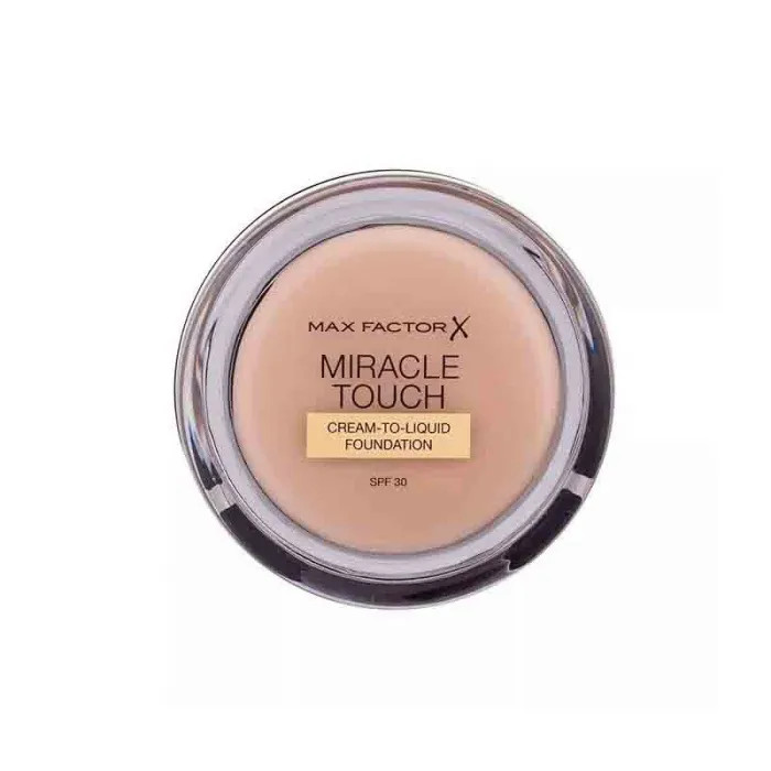To Miracle Touch της Max Factor είναι το νέο πρωτοποριακό make up που θα αλλάξει ριζικά τον τρόπο που δημιουργείτε την βάση του μακιγιάζ σας. Έχει compact μορφή ενώ η υφή του είναι ανάλαφρη και κρεμώδης και περιέχει μια solid-to-liquid καινοτόμο φόρμουλα προσφέροντας φυσικό αποτέλεσμα. Λειτουργεί ως πλήρης βάση χωρίς τη χρήση concealer ή πούδρας και αφήνει το πρόσωπο απαλό, λαμπερό με μία αίσθηση φρεσκάδας που διαρκεί. Κατάλληλο για όλους τους τύπους δέρματος, συμπεριλαμβανομένου και των ευαίσθητων. Δερματολογικά ελεγμένο.
