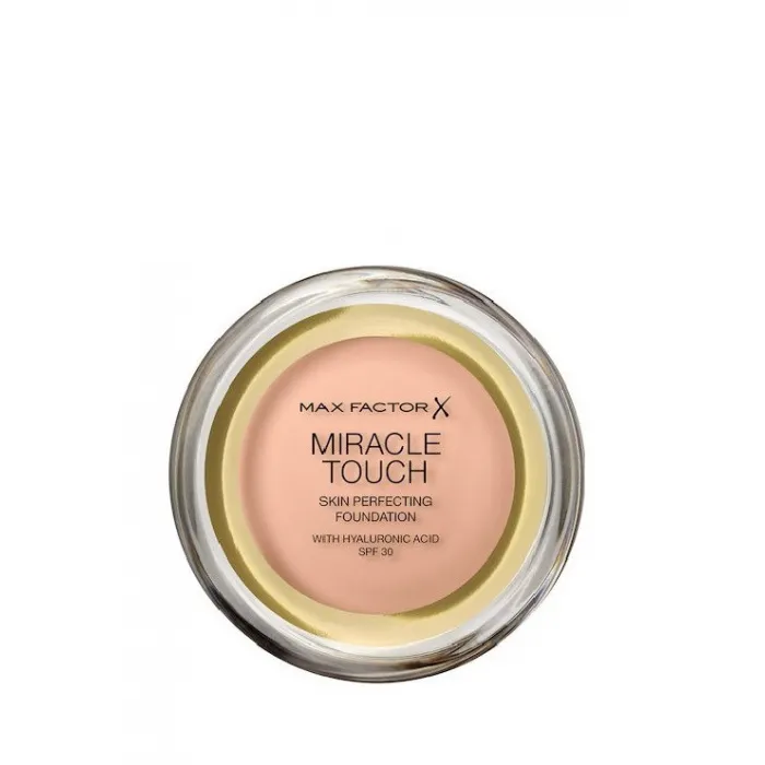 To Miracle Touch της Max Factor είναι το νέο πρωτοποριακό make up που θα αλλάξει ριζικά τον τρόπο που δημιουργείτε την βάση του μακιγιάζ σας. Έχει compact μορφή ενώ η υφή του είναι ανάλαφρη και κρεμώδης και περιέχει μια solid-to-liquid καινοτόμο φόρμουλα προσφέροντας φυσικό αποτέλεσμα. Λειτουργεί ως πλήρης βάση χωρίς τη χρήση concealer ή πούδρας και αφήνει το πρόσωπο απαλό, λαμπερό με μία αίσθηση φρεσκάδας που διαρκεί. Κατάλληλο για όλους τους τύπους δέρματος, συμπεριλαμβανομένου και των ευαίσθητων. Δερματολογικά ελεγμένο.
