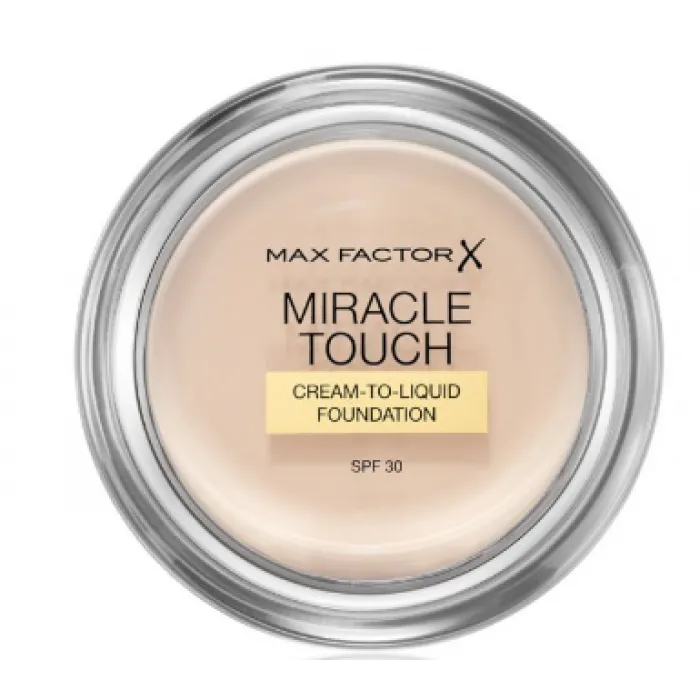 To Miracle Touch της Max Factor είναι το νέο πρωτοποριακό make up που θα αλλάξει ριζικά τον τρόπο που δημιουργείτε την βάση του μακιγιάζ σας. Έχει compact μορφή ενώ η υφή του είναι ανάλαφρη και κρεμώδης και περιέχει μια solid-to-liquid καινοτόμο φόρμουλα προσφέροντας φυσικό αποτέλεσμα. Λειτουργεί ως πλήρης βάση χωρίς τη χρήση concealer ή πούδρας και αφήνει το πρόσωπο απαλό, λαμπερό με μία αίσθηση φρεσκάδας που διαρκεί. Κατάλληλο για όλους τους τύπους δέρματος, συμπεριλαμβανομένου και των ευαίσθητων. Δερματολογικά ελεγμένο.