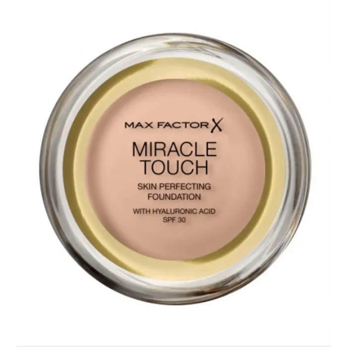 To Miracle Touch της Max Factor είναι το νέο πρωτοποριακό make up που θα αλλάξει ριζικά τον τρόπο που δημιουργείτε την βάση του μακιγιάζ σας. Έχει compact μορφή ενώ η υφή του είναι ανάλαφρη και κρεμώδης και περιέχει μια solid-to-liquid καινοτόμο φόρμουλα προσφέροντας φυσικό αποτέλεσμα. Λειτουργεί ως πλήρης βάση χωρίς τη χρήση concealer ή πούδρας και αφήνει το πρόσωπο απαλό, λαμπερό με μία αίσθηση φρεσκάδας που διαρκεί. Κατάλληλο για όλους τους τύπους δέρματος, συμπεριλαμβανομένου και των ευαίσθητων. Δερματολογικά ελεγμένο.