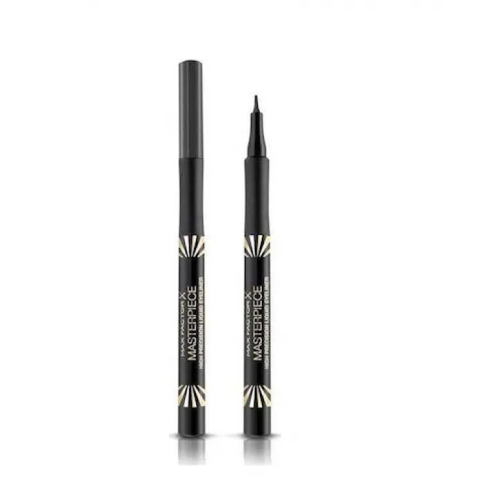 Το Max Factor Masterpiece High Precision Liquid Eyeliner βελτιώνει την εμφάνιση σας. Μπορείτε πλέον να δημιουργήσετε είτε μία δραματική χοντρή γραμμή είτε μία λεπτή κομψή γραμμή έτσι ώστε να επιτύχετε την εμφάνιση που επιθυμείτε. Στα κύρια χαρακτηριστικά του είναι η εναλλαγή από χοντρή σε λεπτή γραμμή χάρη στην ιδιαίτερη άκρη του, η δημιουργία δύο εμφανίσεων χάρη στο ευέλικτο άκρο του ενώ τέλος παρέχει την ένταση ενός υγρού eyeliner με ακρίβεια μολυβιού.