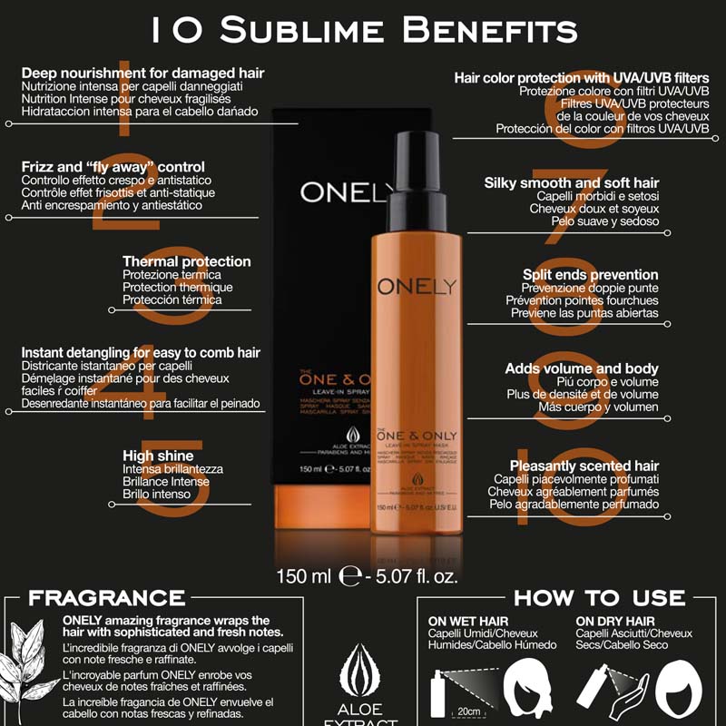 ONELY spray leave in conditioner παρέχει 10 σημαντικά οφέλη για την προστασία των μαλλιών προφέροντας ανανεωμένη λάμψη  υγεία και βελτιωμένη υφή .