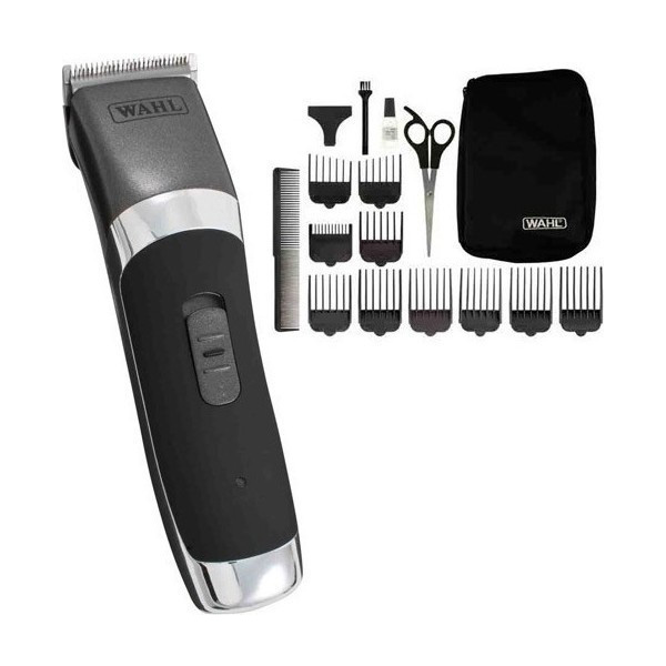 Επαγγελματική ξυριστική μηχανή από την εταιρεία Wahl. Διαθέτει 10 διαφορετικές χτένες για κούρεμα και ξύρισα υψηλής ακρίβειας. Οι λεπίδες της αφαιρούνται καθιστώντας τον καθαρισμό της πολύ εύκολο. Έχει 45 λεπτά αυτονομίας και λειτουργεί ασύρματα και ενσύρματα. Η συσκευασία περιέχει βουρτσάκι καθαρισμού και λάδι καθώς και ψαλίδι και χτένα κουρέματος.